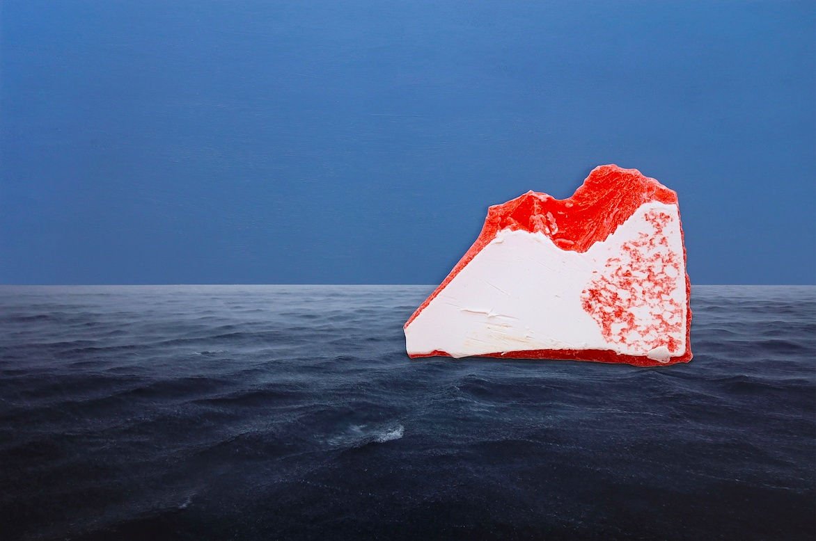 Through her mixed-media landscapes, Marques Pinto explores and emphasizes the human impact on the natural world. Creating surreal landscapes by incorporating found objects of plastic into seascapes, the addition of bright and saturated acrylic pigment into pristine untouched landscapes and marring the images of African savannas and its natural wildlife with foreign colours and textures.